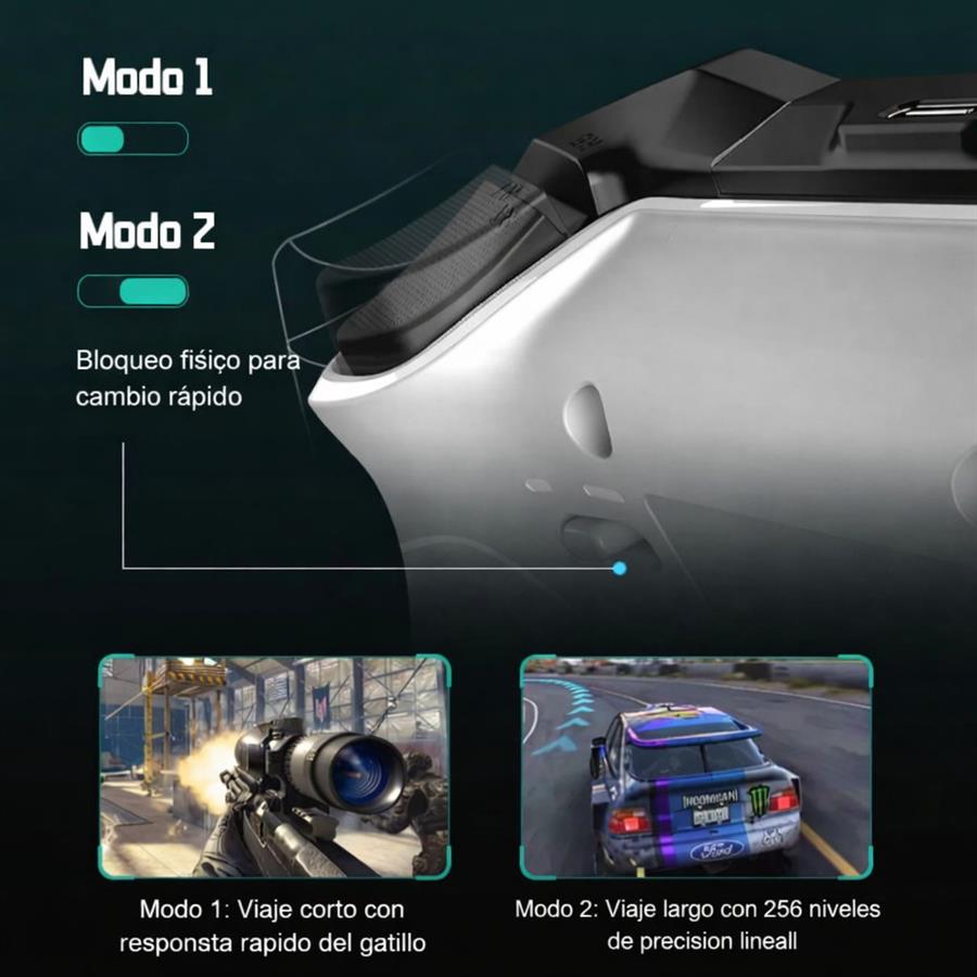 Gatillos y sticks Hall Effect: sin deriva, mayor durabilidad.